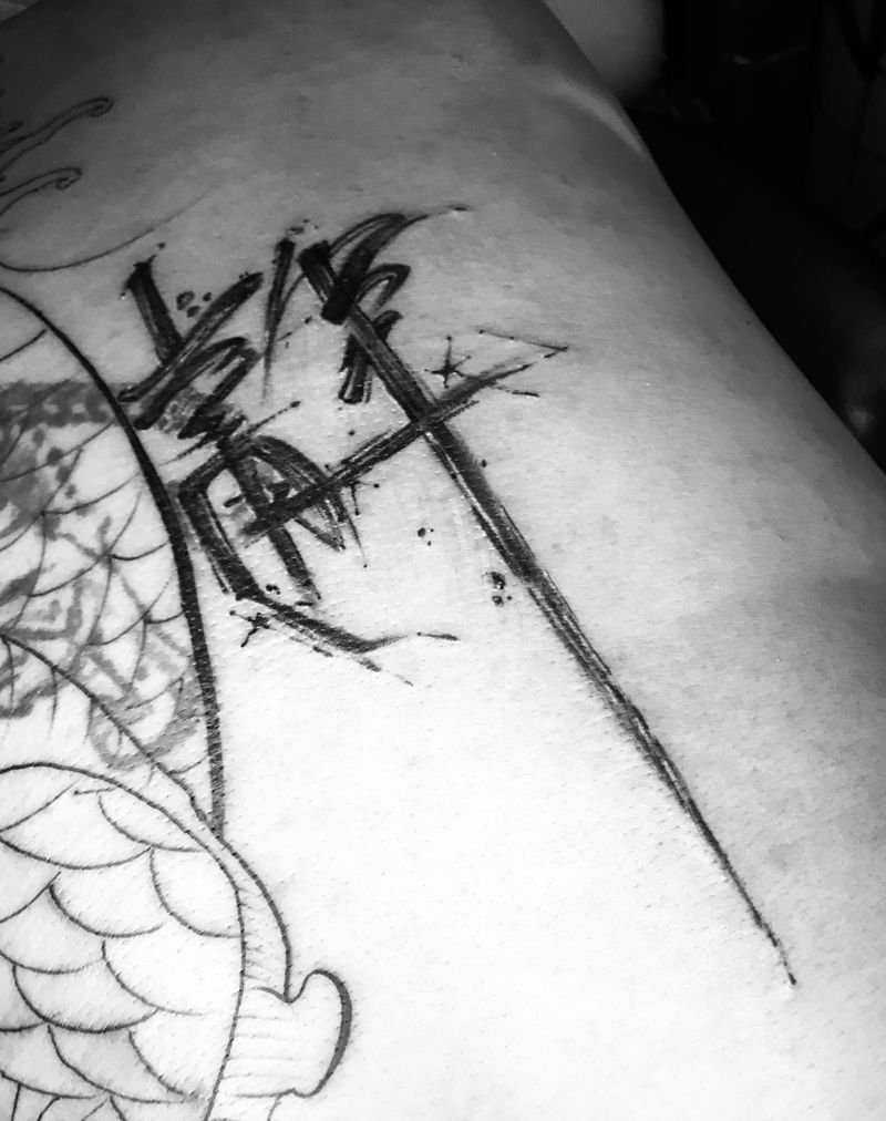 当前位置: 首页 >河北省承德市纹身店-成尧TATTOO纹身图案>水墨字体纹身图片_背部腰部水墨字体纹身图案