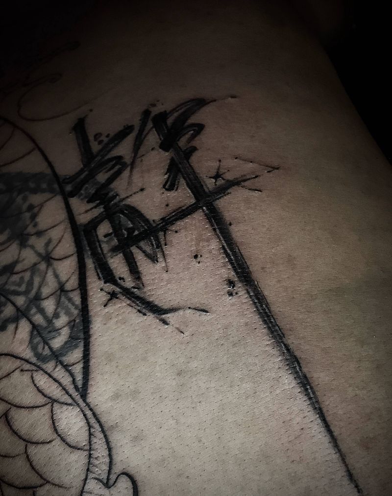 当前位置: 首页 >河北省承德市纹身店-成尧TATTOO纹身图案>水墨字体纹身图片_背部腰部水墨字体纹身图案