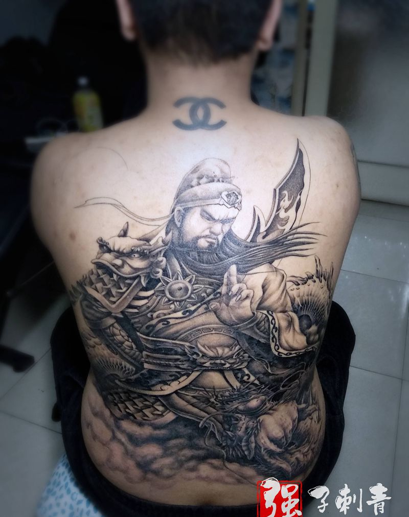 满背关公完成纹身图片_背部新传统纹身图案