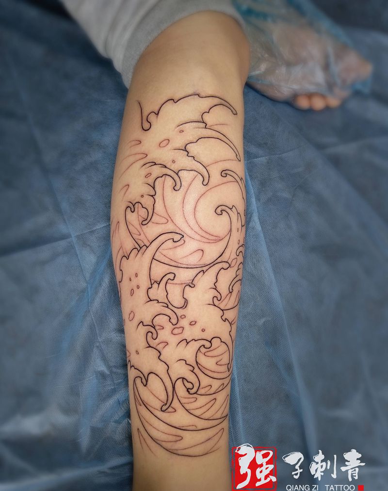 当前位置: 首页 >河北省张家口市纹身店-强子刺青纹身图案>水浪线条纹身图片_腿部新传统割线纹身图案