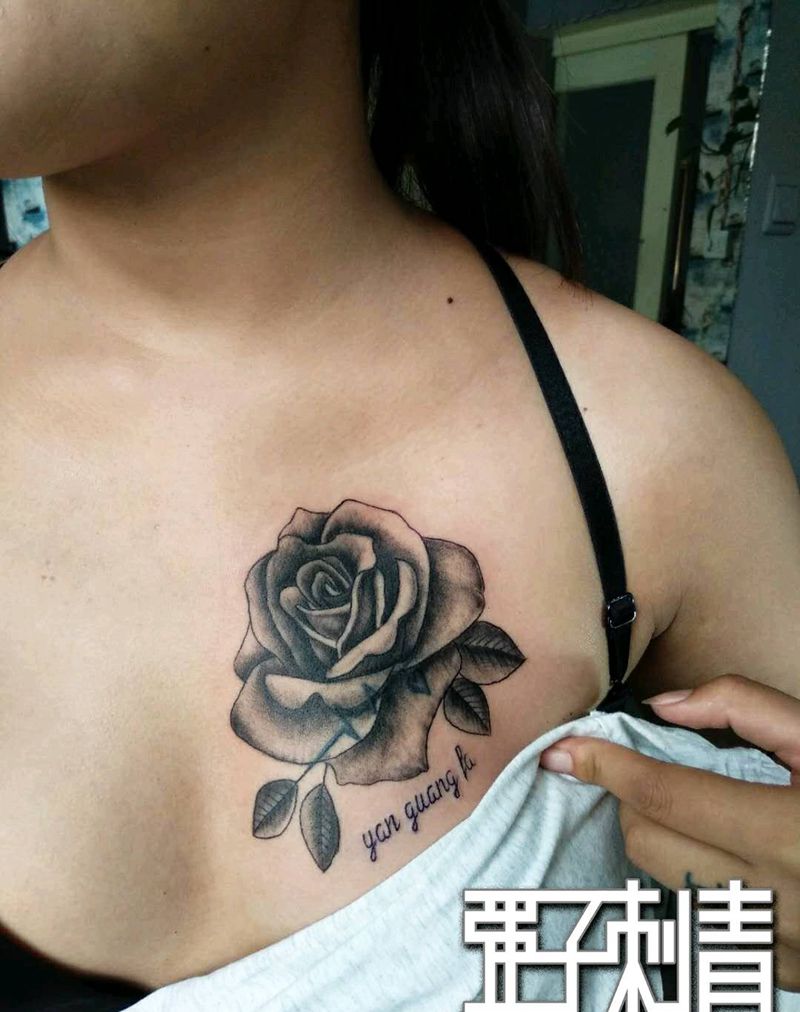 玫瑰花遮盖心电图纹身图片_胸部欧美写实纹身图案