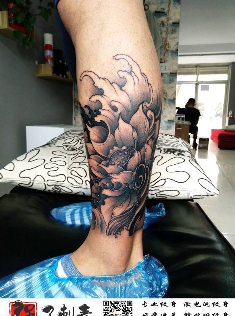 当前位置: 首页 >河北省张家口市纹身店-强子刺青纹身图案>小腿外侧黑灰荷花纹身图片_腿部新传统纹身图案