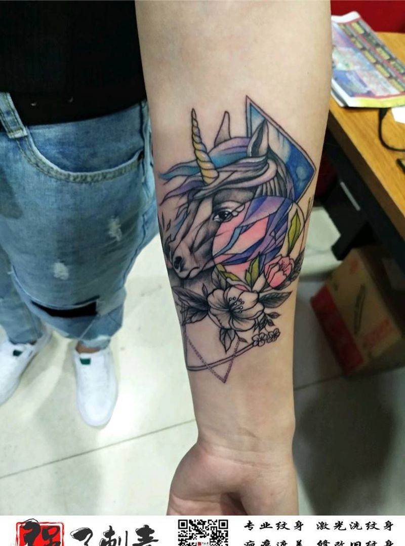 当前位置: 首页 >河北省张家口市纹身店-强子刺青纹身图案>小清新《独角兽》纹身图片_手臂新传统纹身图案