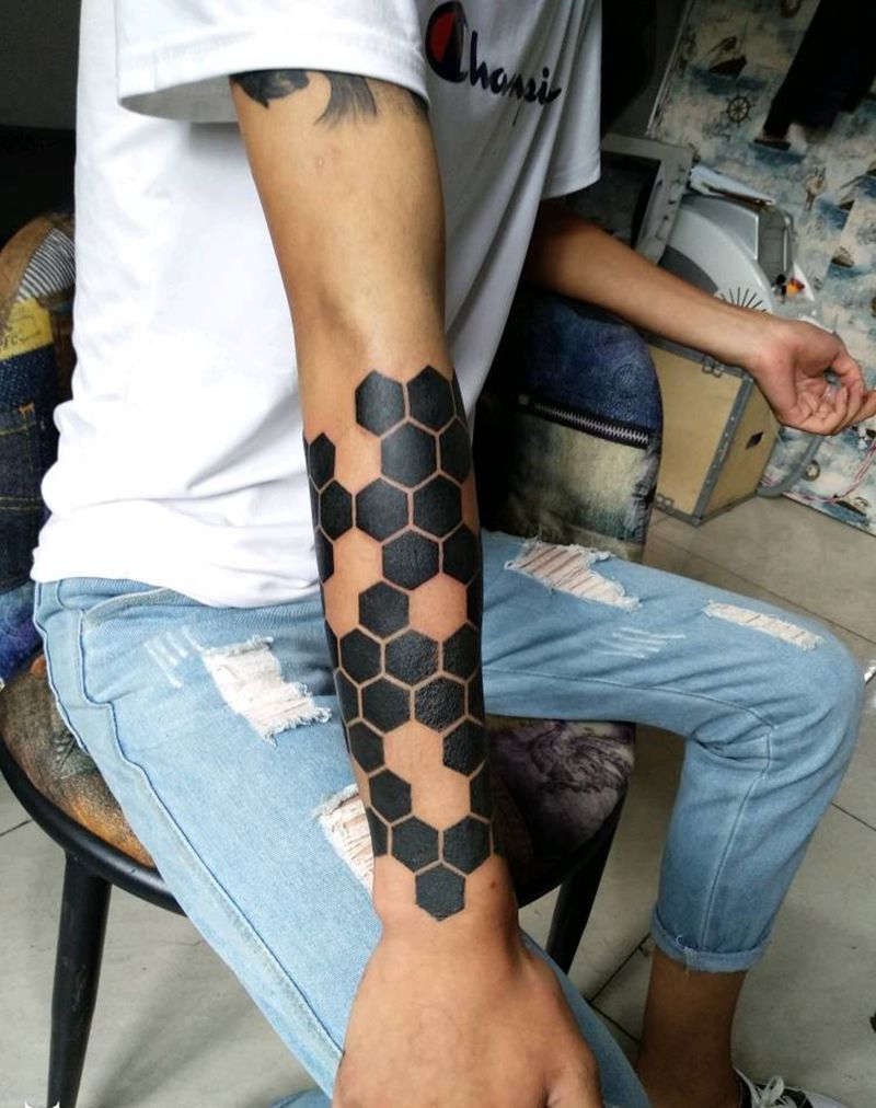 六边形图腾花臂《小臂部分完成》纹身图片_手臂图腾纹身图案