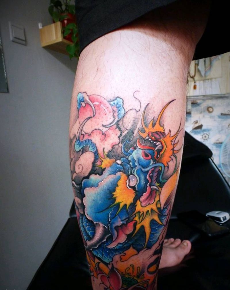 彩色《龙》纹身图片_腿部新传统彩色龙纹身图案