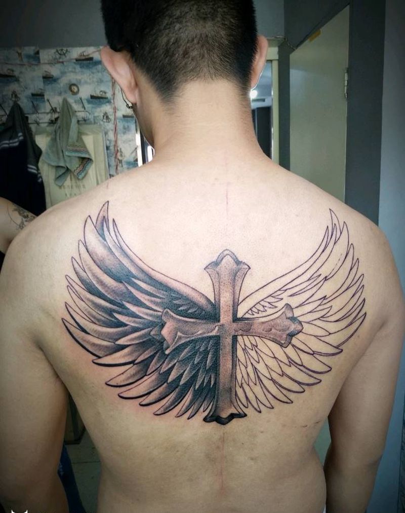 十字架《翅膀》纹身图片_背部新传统纹身图案