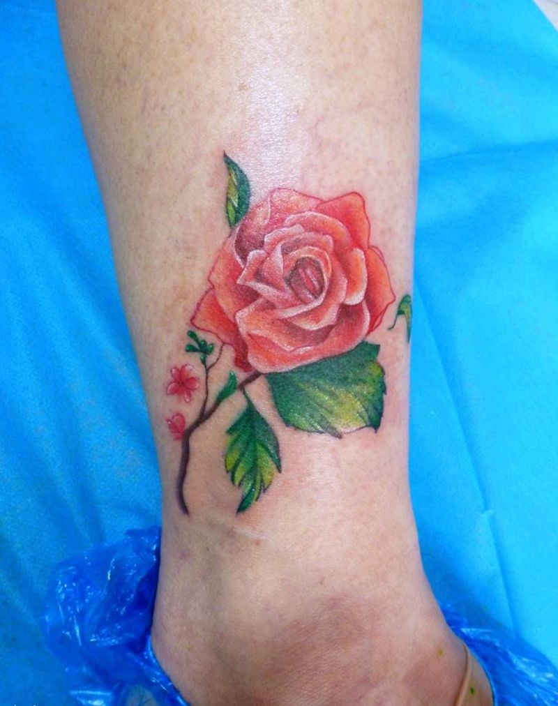 脚踝小清新《玫瑰花》纹身图片_腿部新传统纹身图案