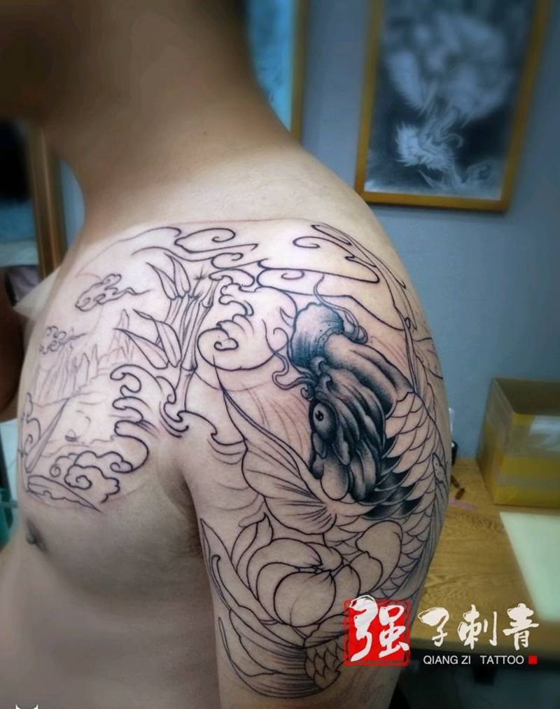 当前位置: 首页 >河北省张家口市纹身店-强子刺青纹身图案>半胛《鱼》未完待续纹身图片_肩部胸部新传统纹身图案