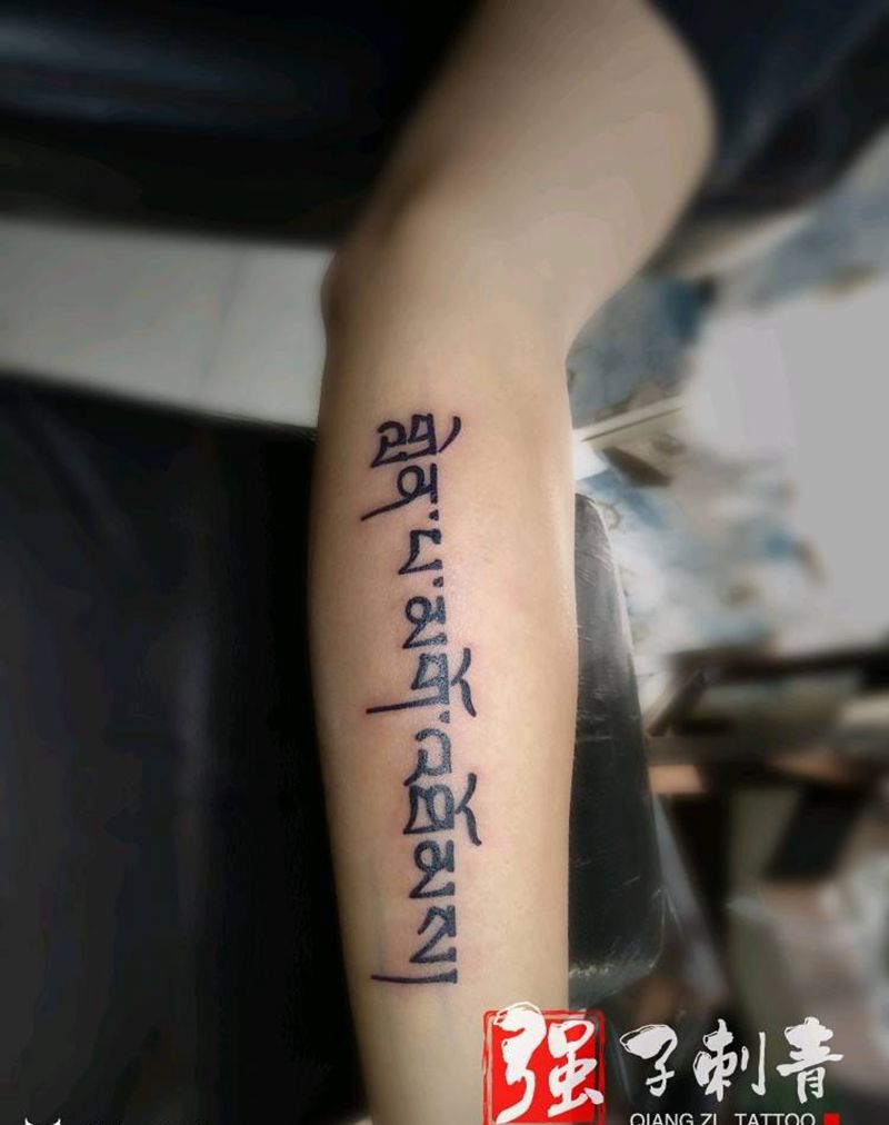 当前位置: 首页 >河北省张家口市纹身店-强子刺青纹身图案>藏文《傻愣愣》纹身图片_手臂纹身图案