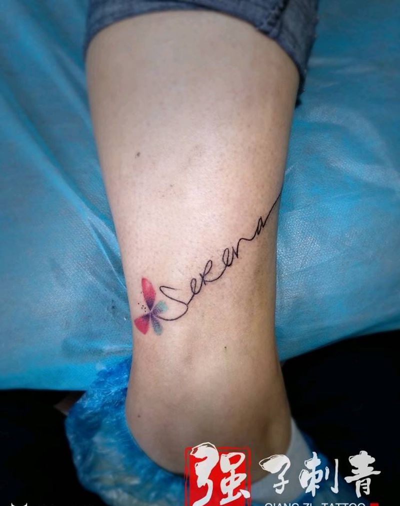 小清新字母纹身图片_腿部字母小清新纹身图案
