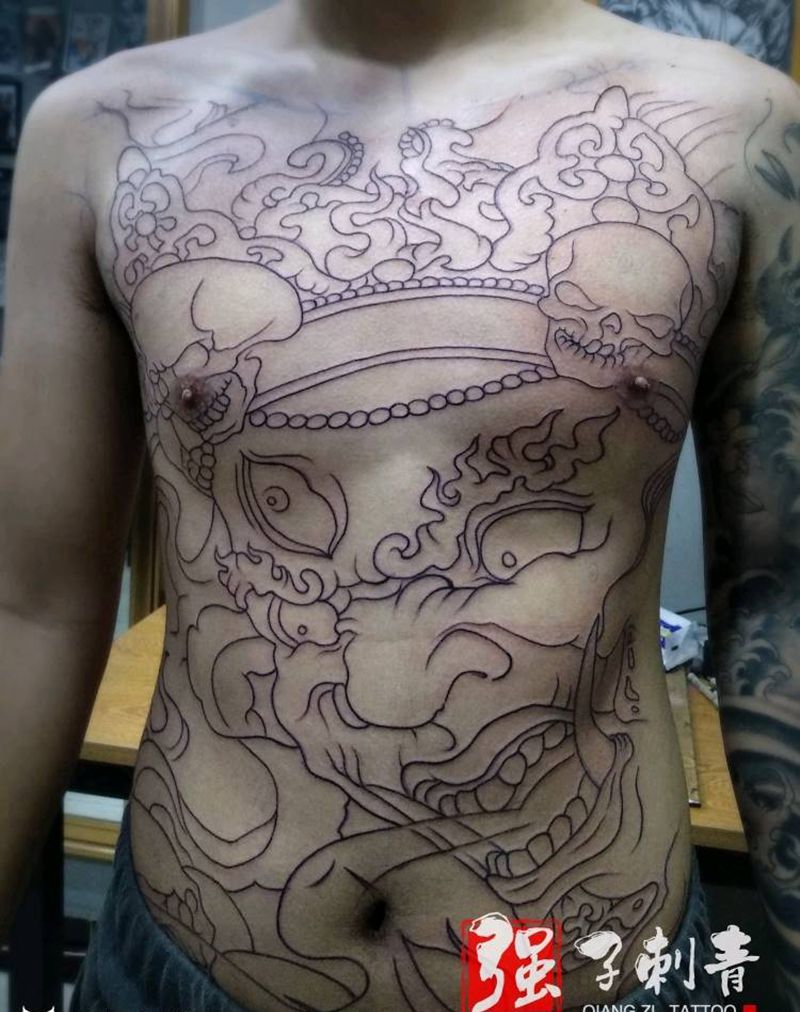 当前位置: 首页 >河北省张家口市纹身店-强子刺青纹身图案>大黑天神纹身图片_胸部腹部新传统割线肚子花胸纹身图案