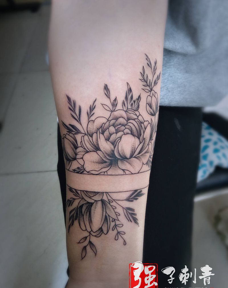 小清新素花臂环纹身图片_手臂新传统纹身图案