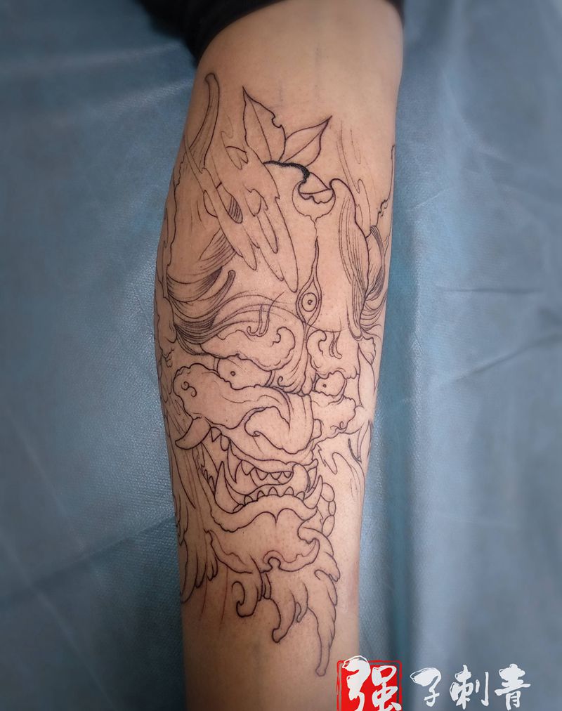 当前位置: 首页 >河北省张家口市纹身店-强子刺青纹身图案>般若线条纹身图片_腿部新传统割线纹身图案