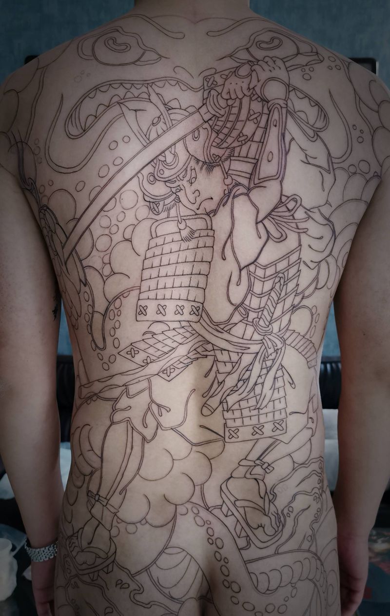 黑灰满背纹身图案