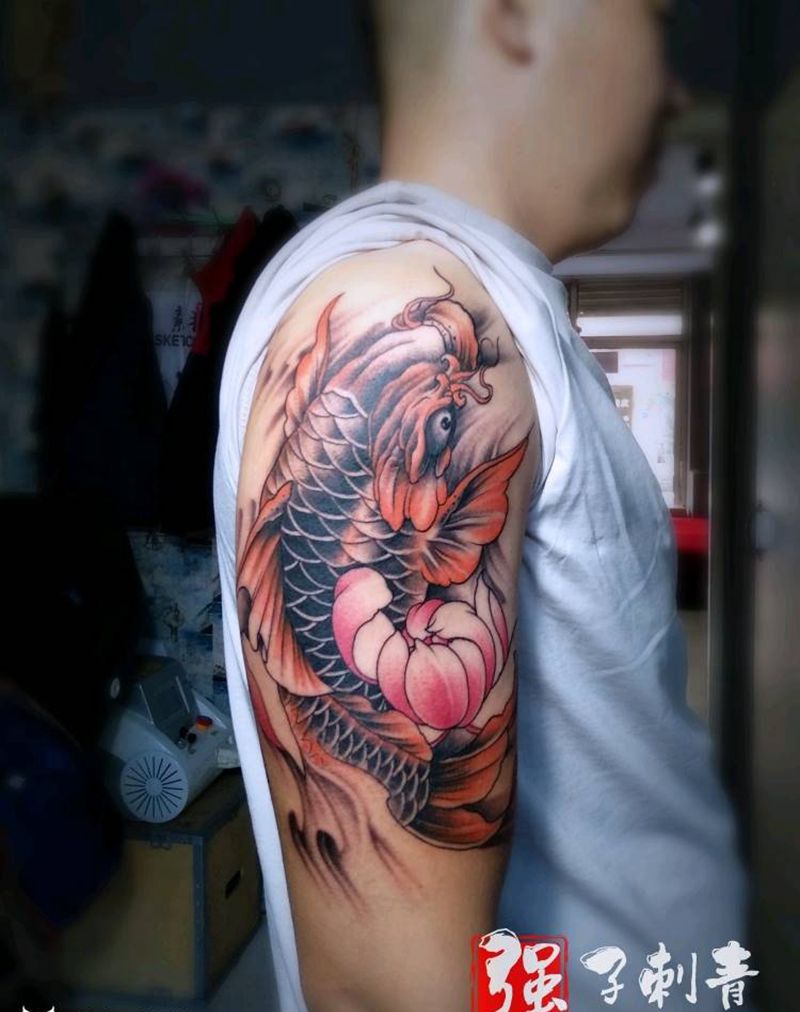 招财大鲤鱼纹身图片_手臂新传统纹身图案