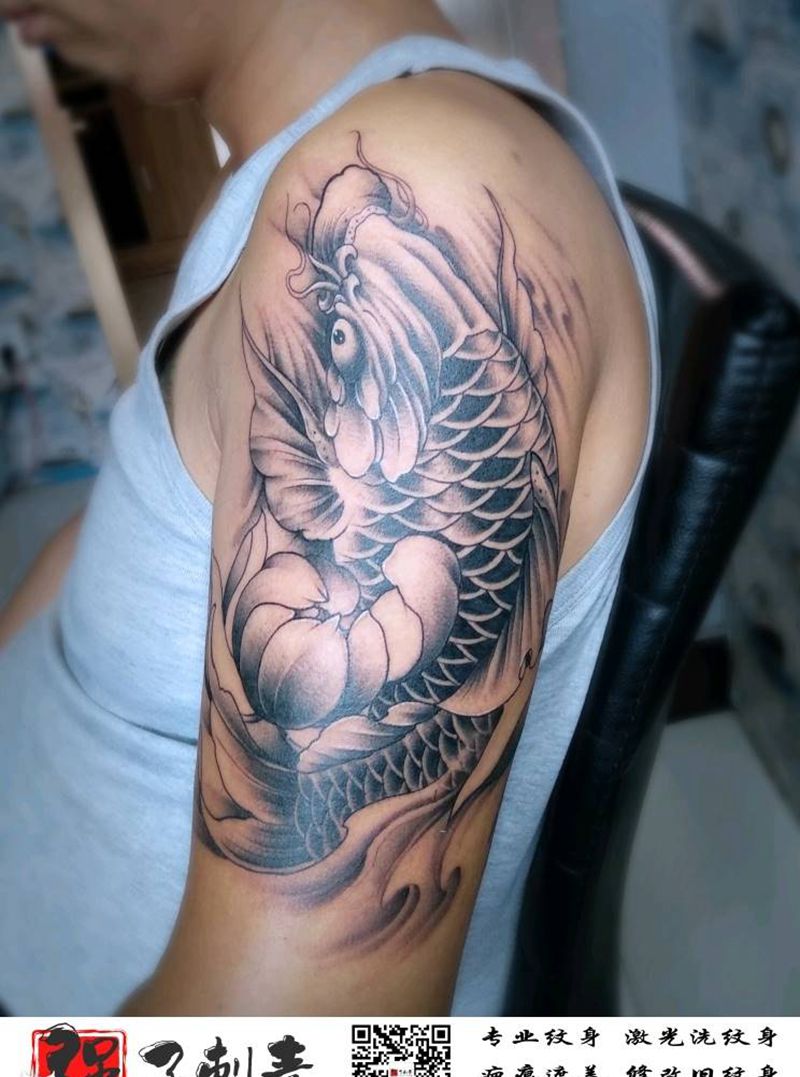 黑灰鲤鱼纹身图片_手臂新传统纹身图案