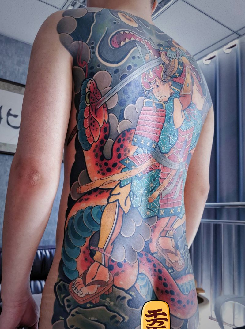 黑灰满背纹身图案