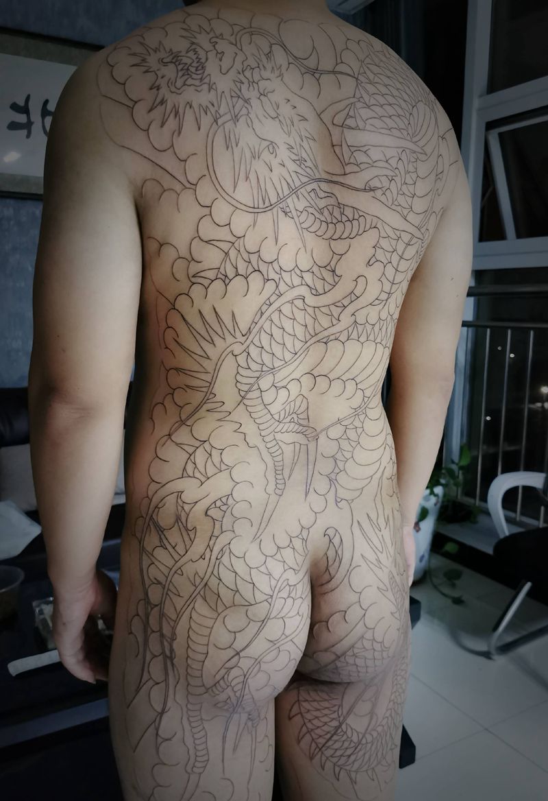 黑灰满背纹身图案