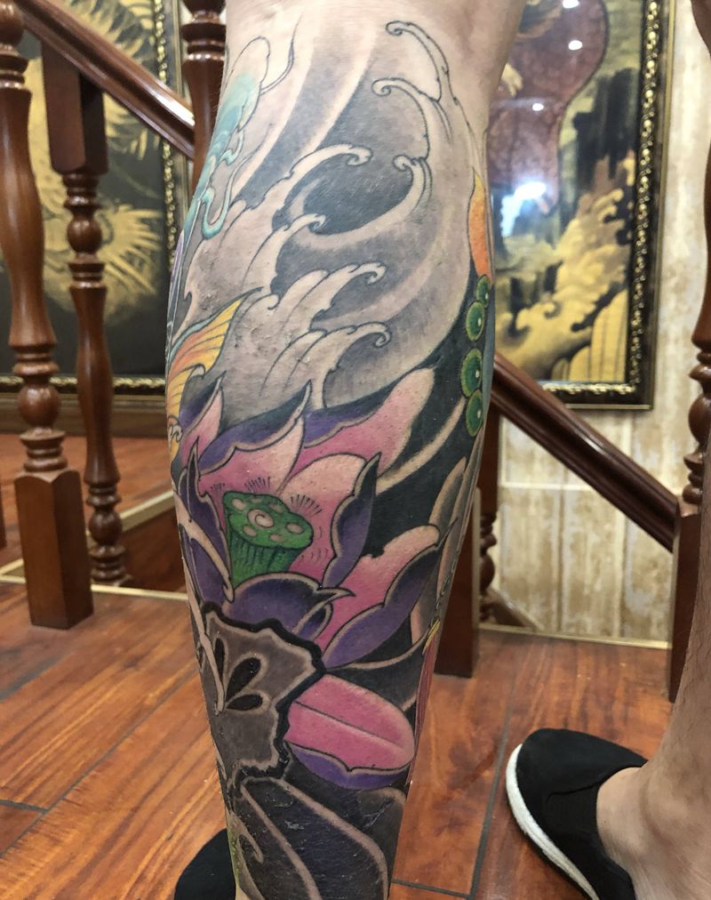 当前位置: 首页 >河北省沧州市纹身店-渡北刺青纹身图案>招财鱼 包小腿纹身图片_腿部新传统纹身图案