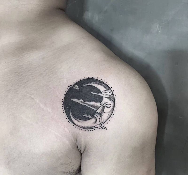 当前位置: 首页 >河北省张家口市纹身店-NICE·TATTOO纹身工作室纹身图案>月亮与太阳纹身图片_肩部纹身图案