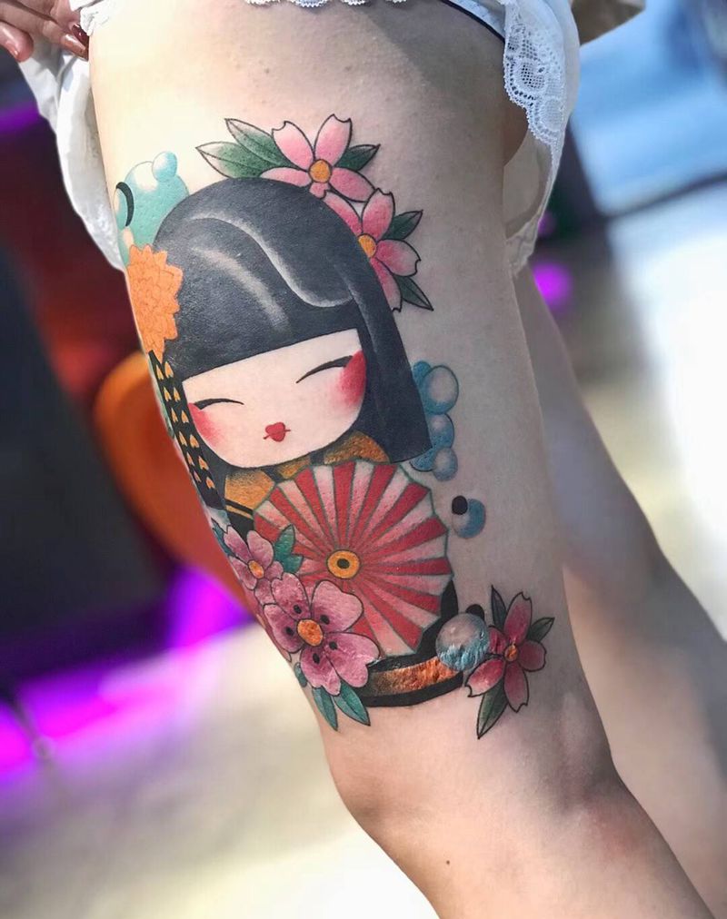 当前位置: 首页 >河北省张家口市纹身店-NICE·TATTOO纹身工作室纹身图案>艺妓娃娃纹身图片_腿部纹身图案