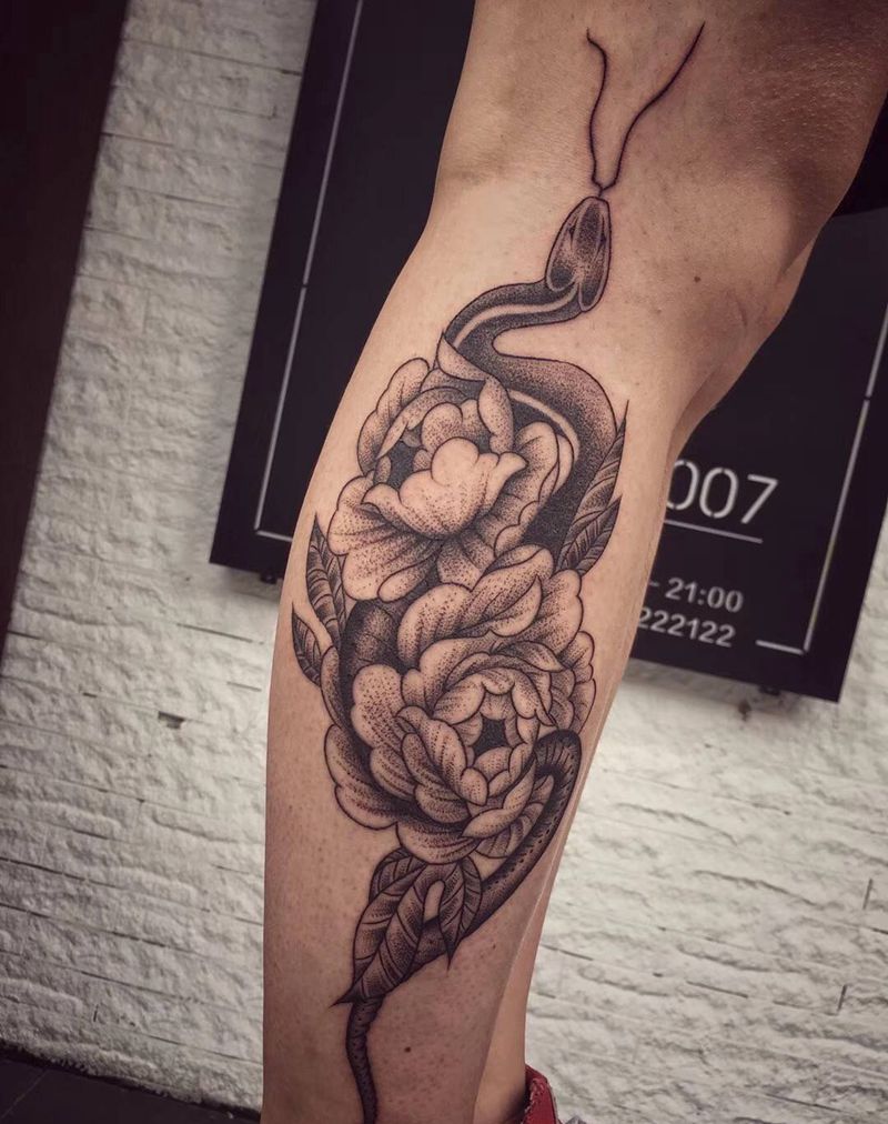 • T网红王老大花腿龙纹身图片_腿部新传统纹身图案