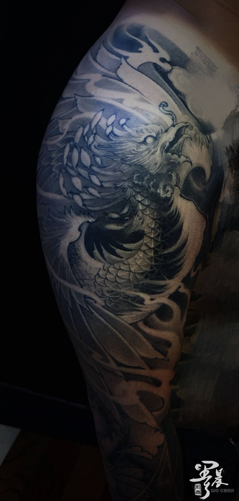 当前位置: 首页 >河北省沧州市纹身店-沧州墨晨刺青纹身图案>花臂一条纹身图片_手臂纹身图案