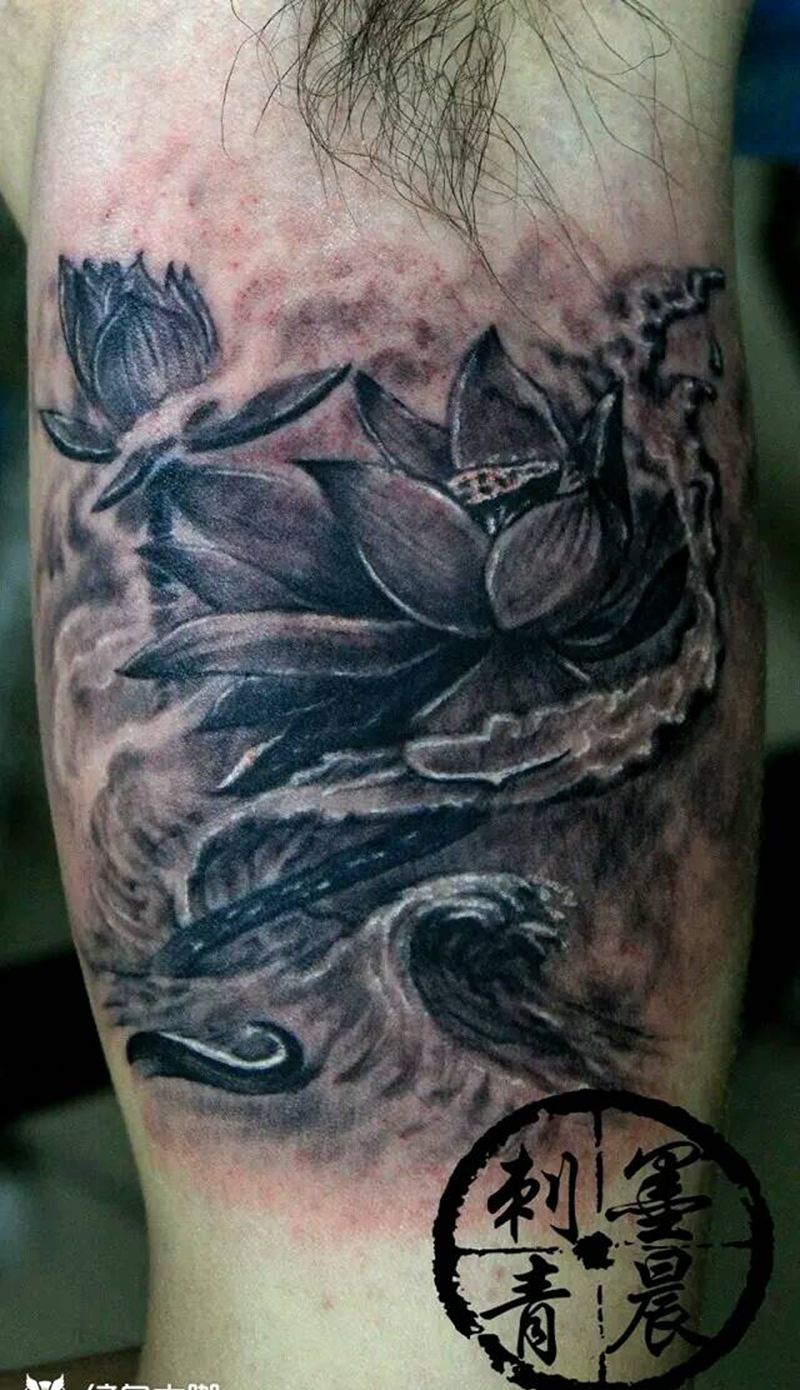一组15张莲花纹身手