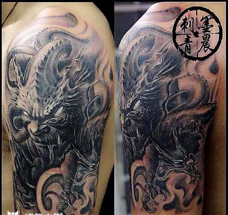 • 纹身吧推荐的披肩图腾半胛纹身图案作品展示