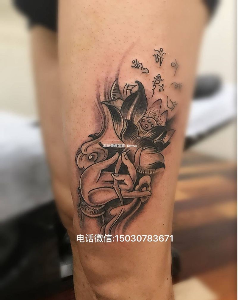 当前位置: 首页 >河北省沧州市纹身店-沧州墨晨刺青纹身图案>佛手莲花纹身图片