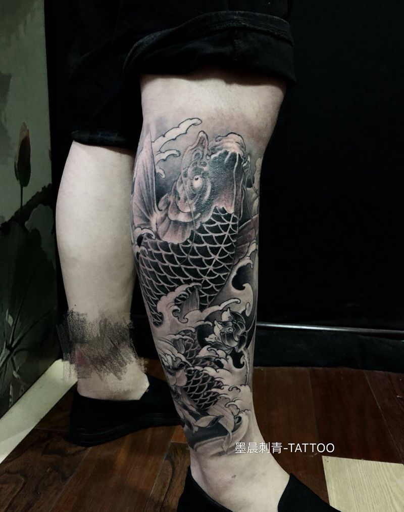 当前位置: 首页 >河北省沧州市纹身店-沧州墨晨刺青纹身图案>小腿鱼纹身图片