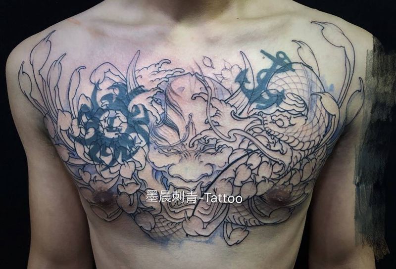 当前位置: 首页 >河北省沧州市纹身店-沧州墨晨刺青纹身图案>大花胸 覆盖纹身图片