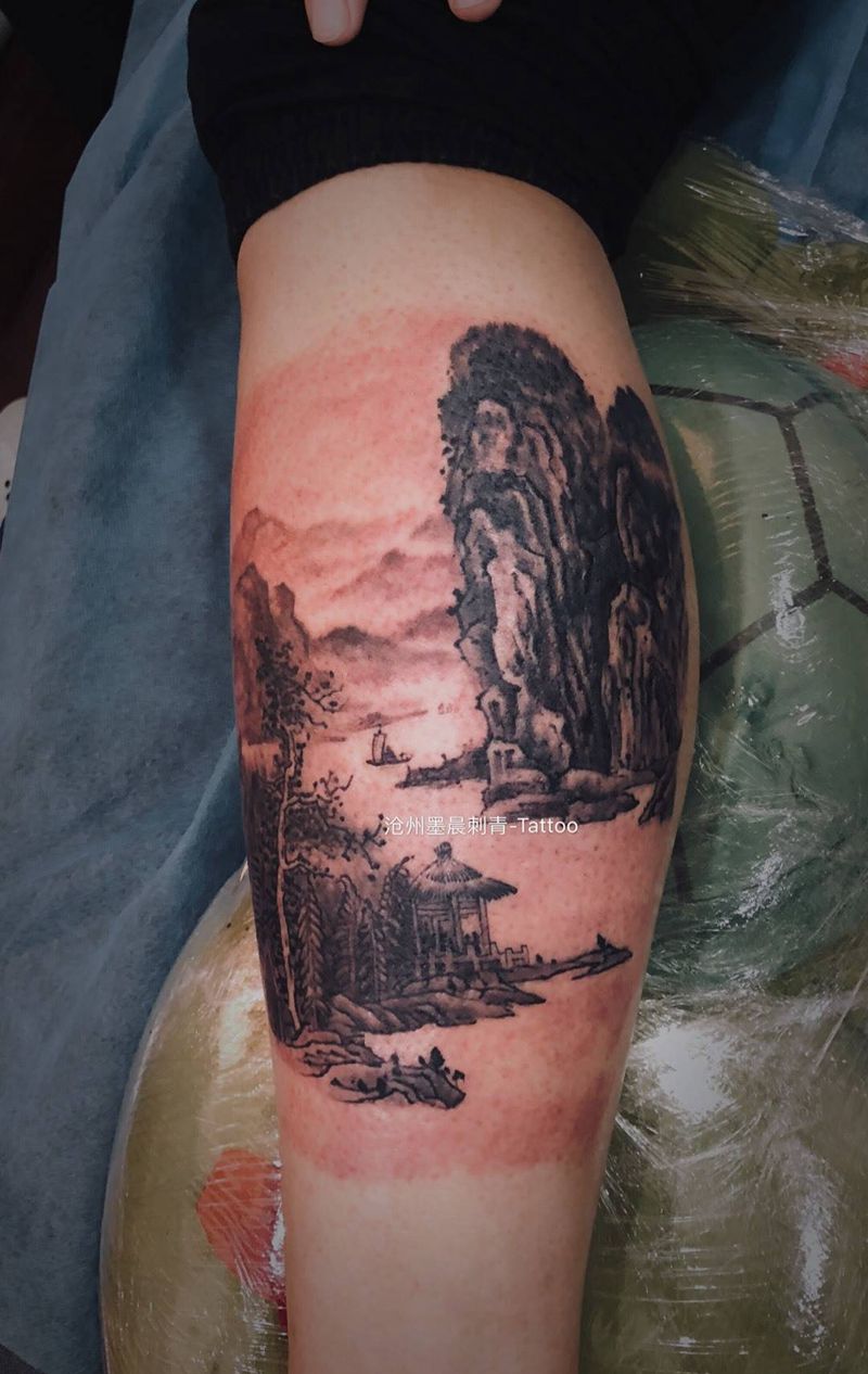 当前位置: 首页 >河北省沧州市纹身店-沧州墨晨刺青纹身图案>山水纹身图片