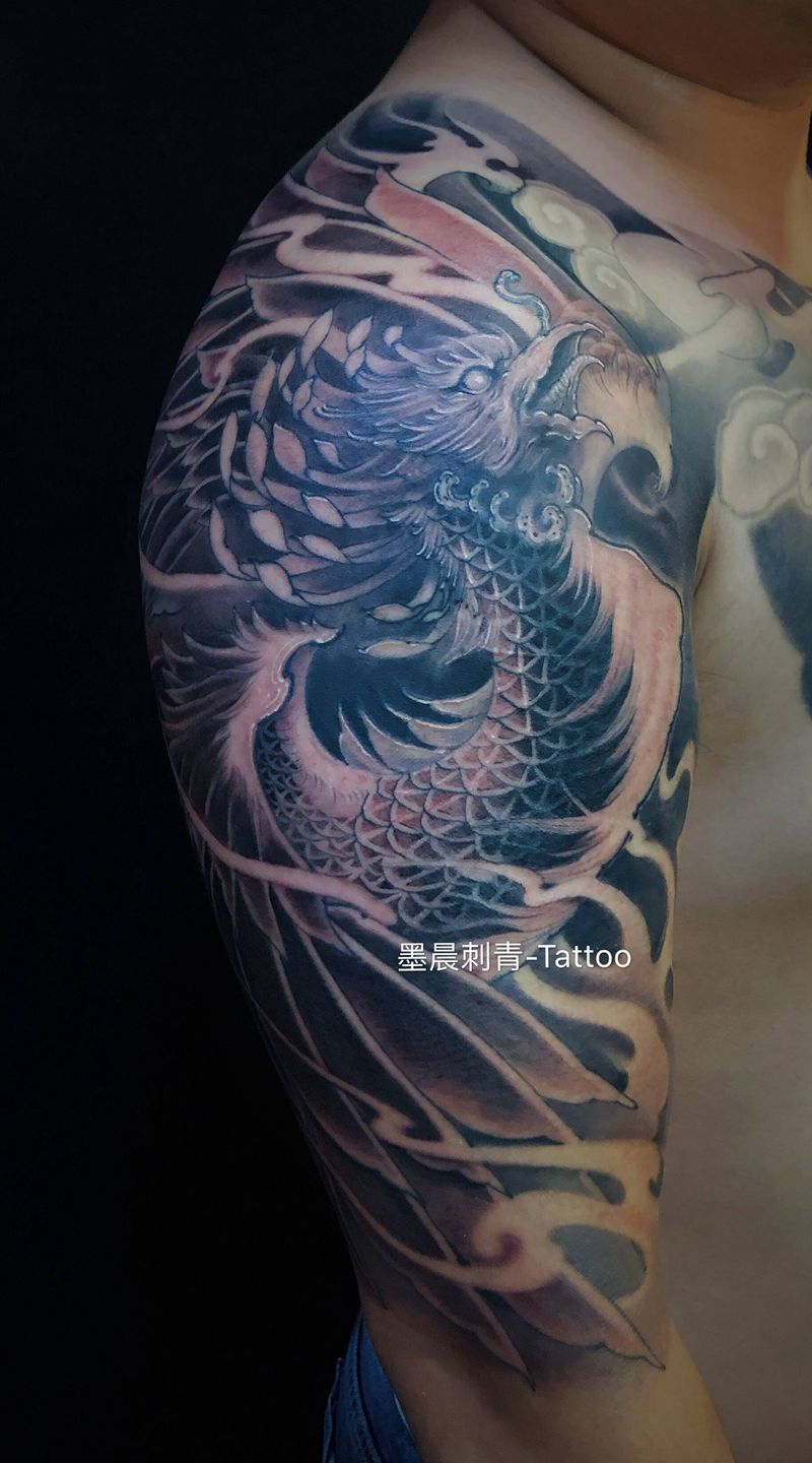 黑灰满背纹身图案