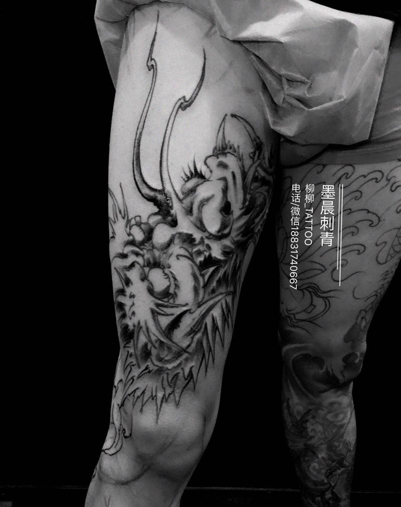 • T网红王老大花腿龙纹身图片_腿部新传统纹身图案