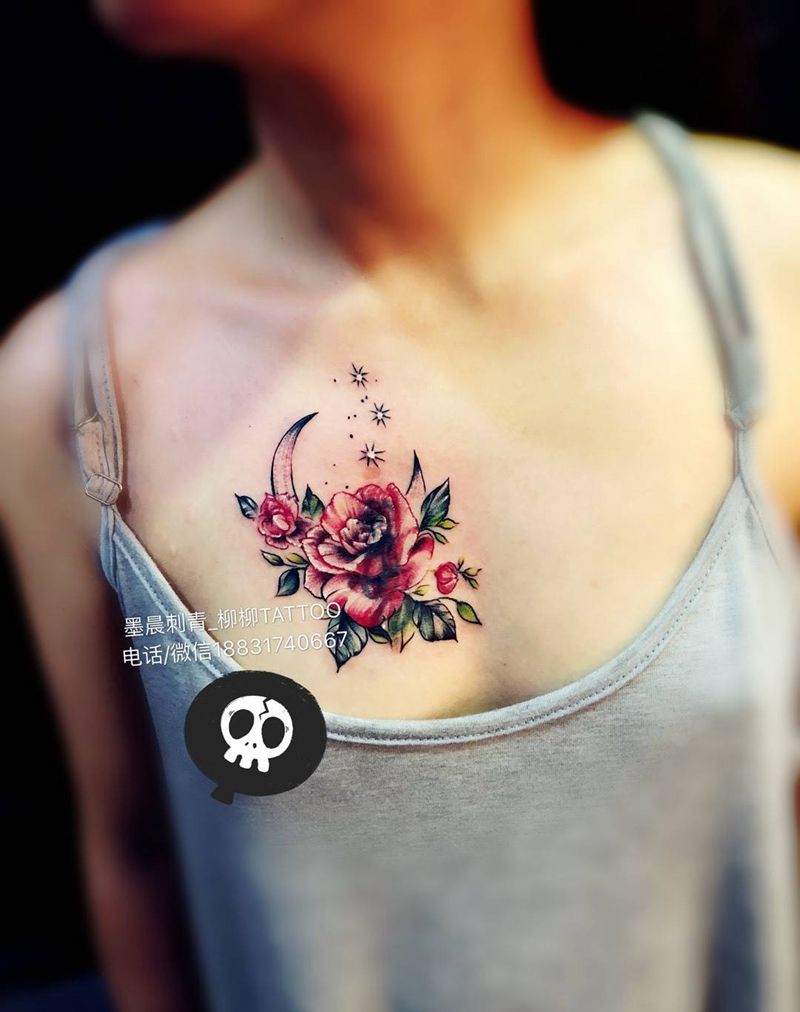 • 女性大花胸纹身_43张霸气漂亮的女性大花胸纹身图案作品