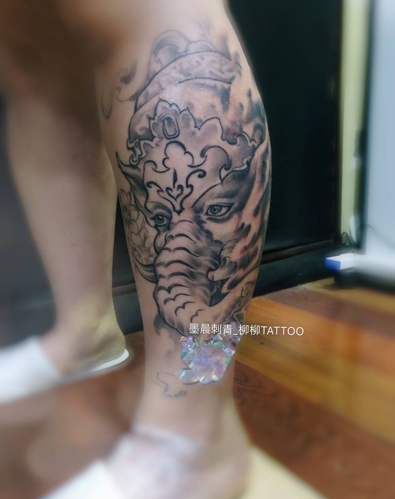 当前位置: 首页 >河北省沧州市纹身店-沧州墨晨刺青纹身图案>象神纹身图片_腿部新传统纹身图案