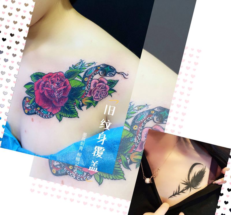 遮盖纹身图片_胸部纹身图案
