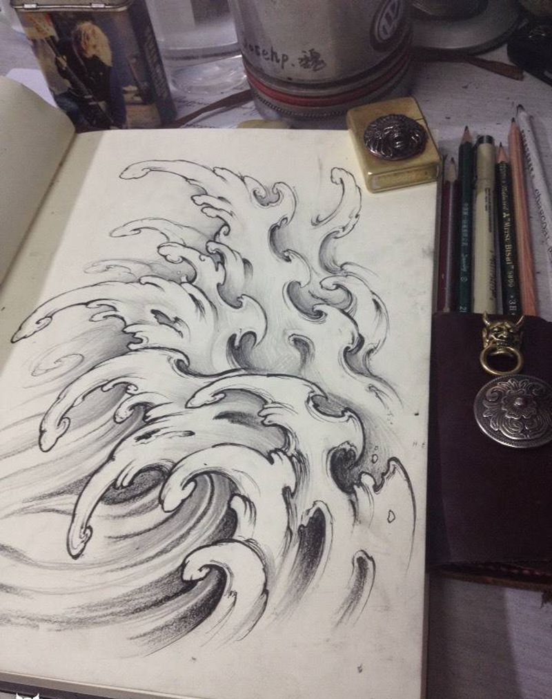 浪花淘尽英雄纹身图片_手稿传统原创纹身图案