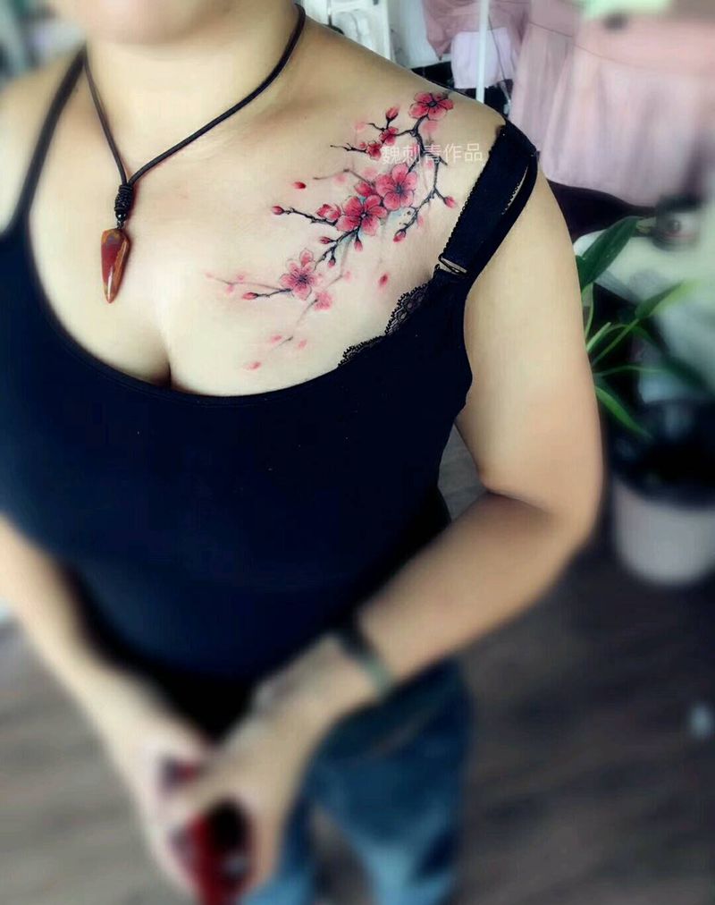 • 女性大花胸纹身_43张霸气漂亮的女性大花胸纹身图案作品