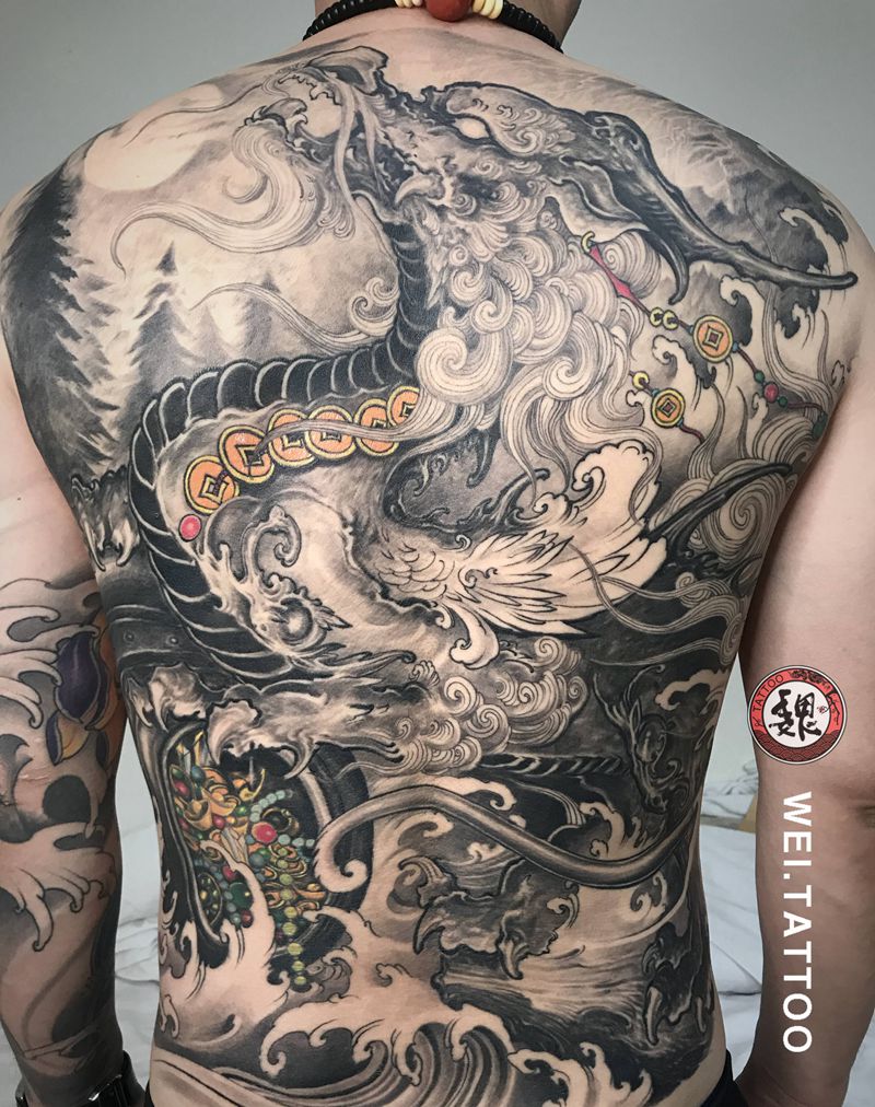 • T云龙九郎纹身图片_背部老传统云龙九郎纹身图案