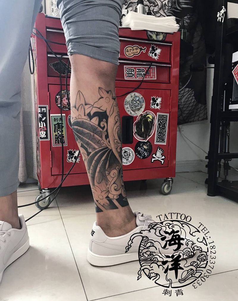 • T网红王老大花腿龙纹身图片_腿部新传统纹身图案