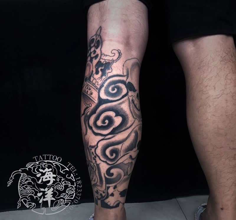 • T网红王老大花腿龙纹身图片_腿部新传统纹身图案