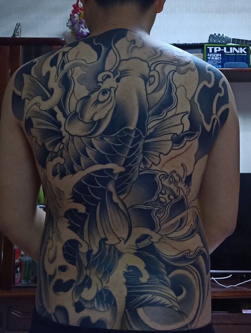 当前位置: 首页 >河北省沧州市纹身店-海洋刺青纹身图案>满背鲤鱼纹身图片