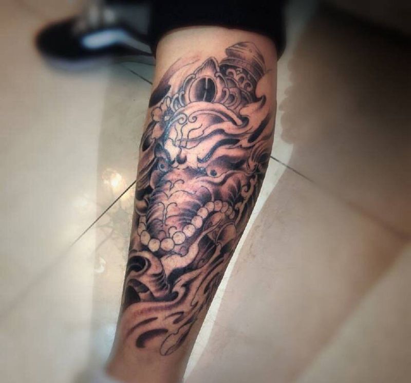 • T网红王老大花腿龙纹身图片_腿部新传统纹身图案