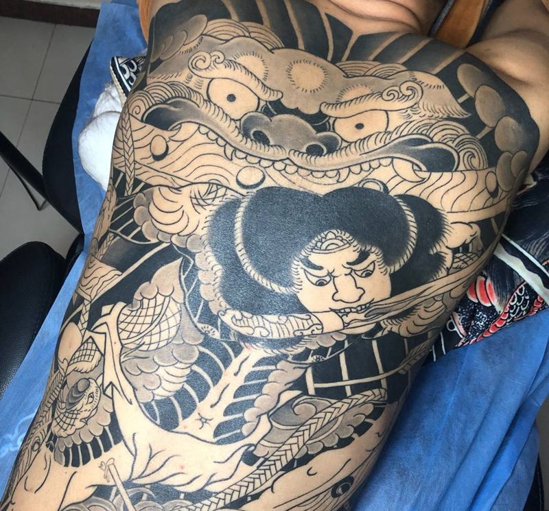• 黑灰满背纹身图案