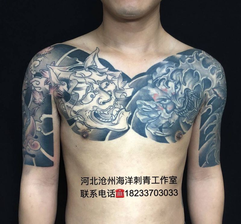 黑灰满背纹身图案