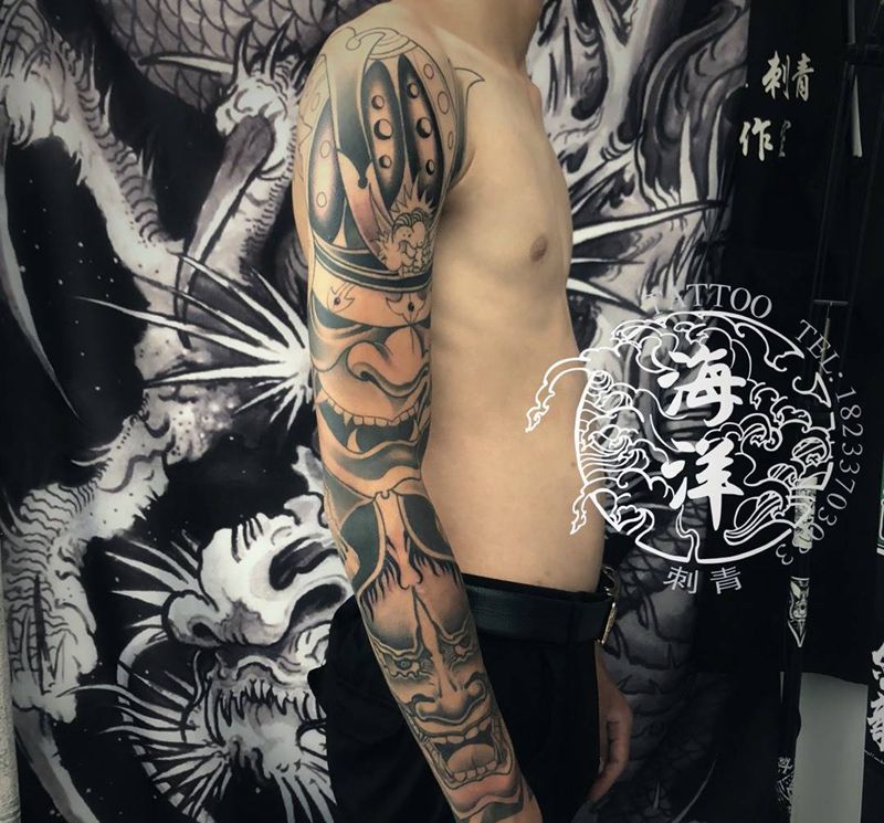 当前位置: 首页 >河北省沧州市纹身店-海洋刺青纹身图案>鬼武士 般若纹身图片