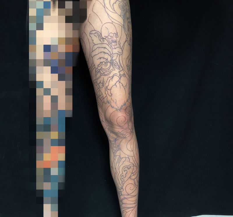 • T网红王老大花腿龙纹身图片_腿部新传统纹身图案