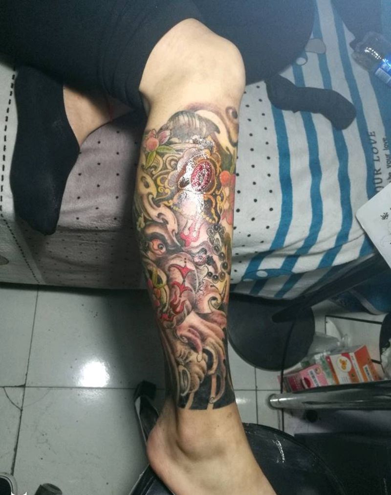 • T网红王老大花腿龙纹身图片_腿部新传统纹身图案